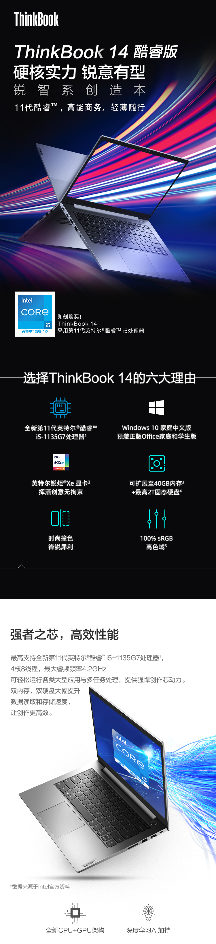 商品名称:联想ThinkBook 14 2021款 酷睿版 英特尔酷睿i5 14英寸轻薄笔记本(i5-1135G7 16G 512G 锐炬显卡 高色域)